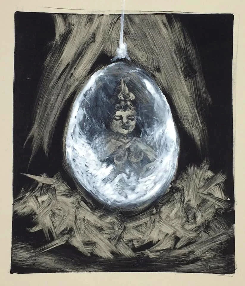 the artist approaches the egg